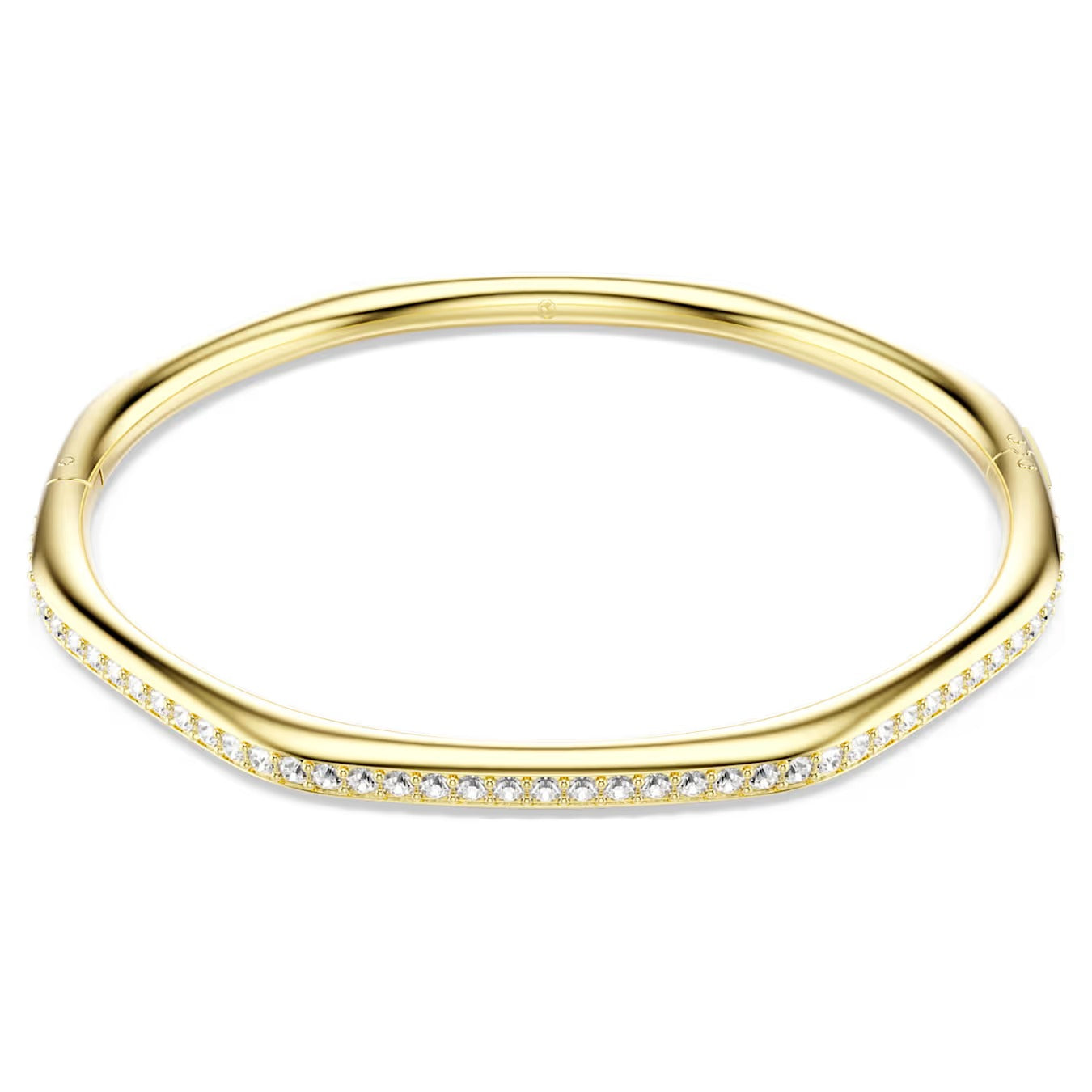 • One of Swarovski’s most popular styles, this Dextera bangle makes a chic statement. With a slender octagonal design, the gold-tone plated piece is accented with a row of precision-cut crystals in a refined prong setting. Style yours solo or stacked with other bangles to elevate the glow.