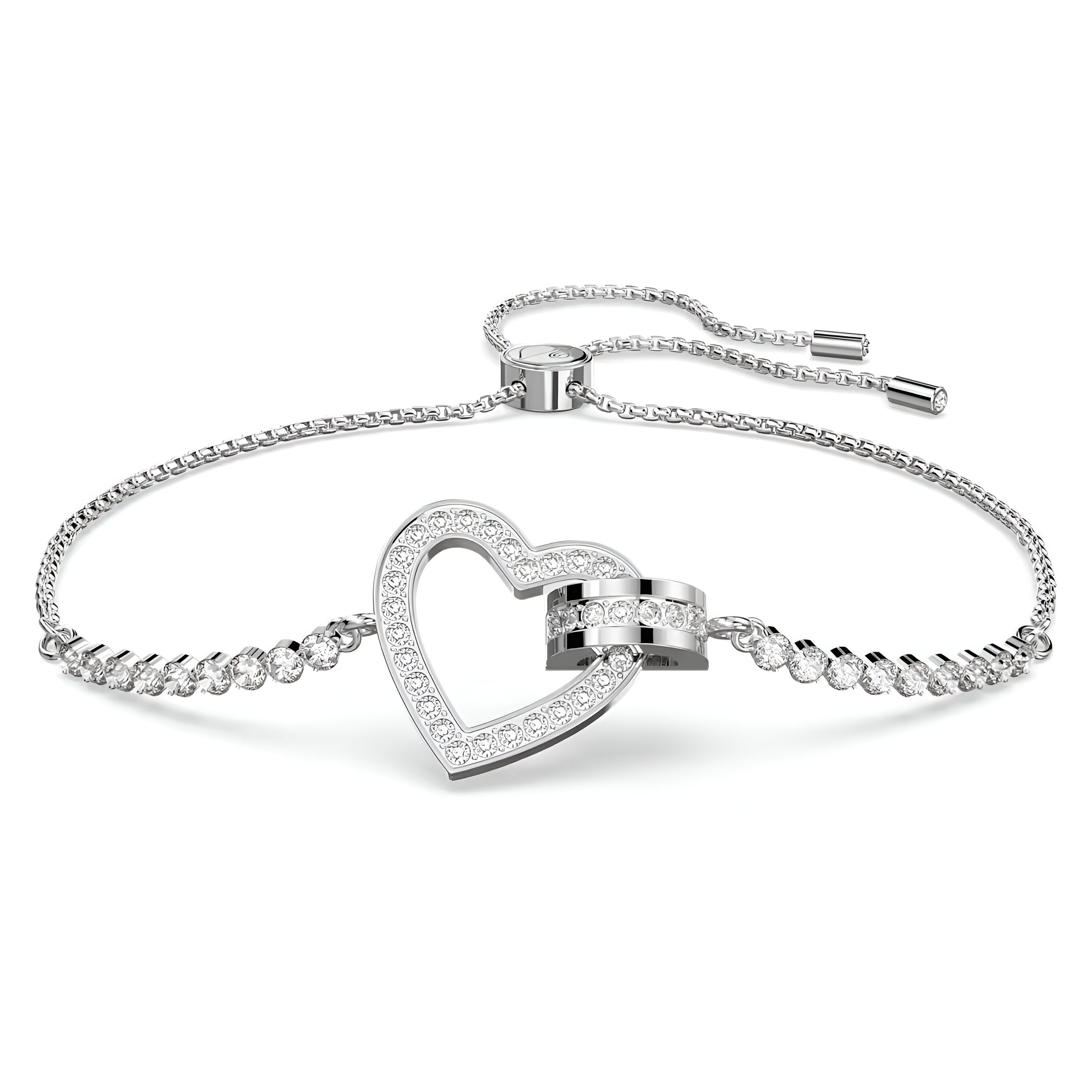 هذا السوار الأنيق من سواروفسكي يُجسّد جمالاً خالداً. صفّان من الأحجار البيضاء متعددة الأوجه تتألقان ببراعة، متناوبين بين الأشكال المربعة والقطرية والدائرية، مع أشكال بيضاوية وزخرفية أنيقة تُضفي بريقاً ساحراً. يُغلق السوار بمشبك قابل للطي، ويُناسب تماماً قطع المجوهرات المتناسقة، ليُضفي لمسةً أنيقةً على إطلالتك. فكرة رائعة لتقديمها كهدية.